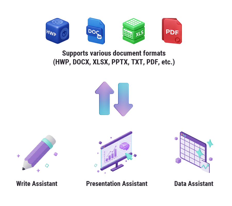AI assistants that gelp create, edit, and analyze various work document formats quickly and easily